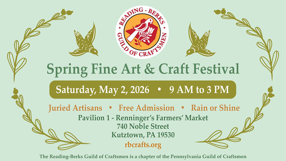 All displayed items must be the original work of the craftsperson of record and must adhere to the Reading-Berks Guild standards: excellence in craftsmanship, well-resolved design, and a distinctive voice or style. Whenever possible, work should include the maker’s signature or hallmark.